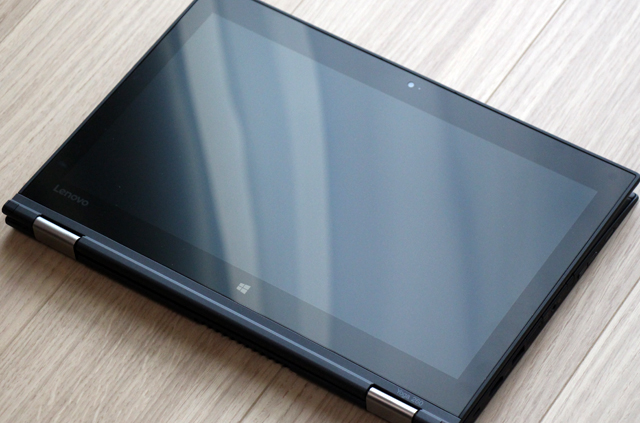 タブレットモード。 文字通り、タブレットとして利用できるモードです。 ペンと使って何かを描きこんだり、皆で画面をのぞきこんだり、対戦ゲームのプレイなどにも便利。 脱着型の2-in-1とは異なり、キーボードが付いたままであるため、重さや厚みの面で不利な感じがしますが、 ThinkPad Yoga 260は薄く軽くできているため、意外と扱いやすいです。